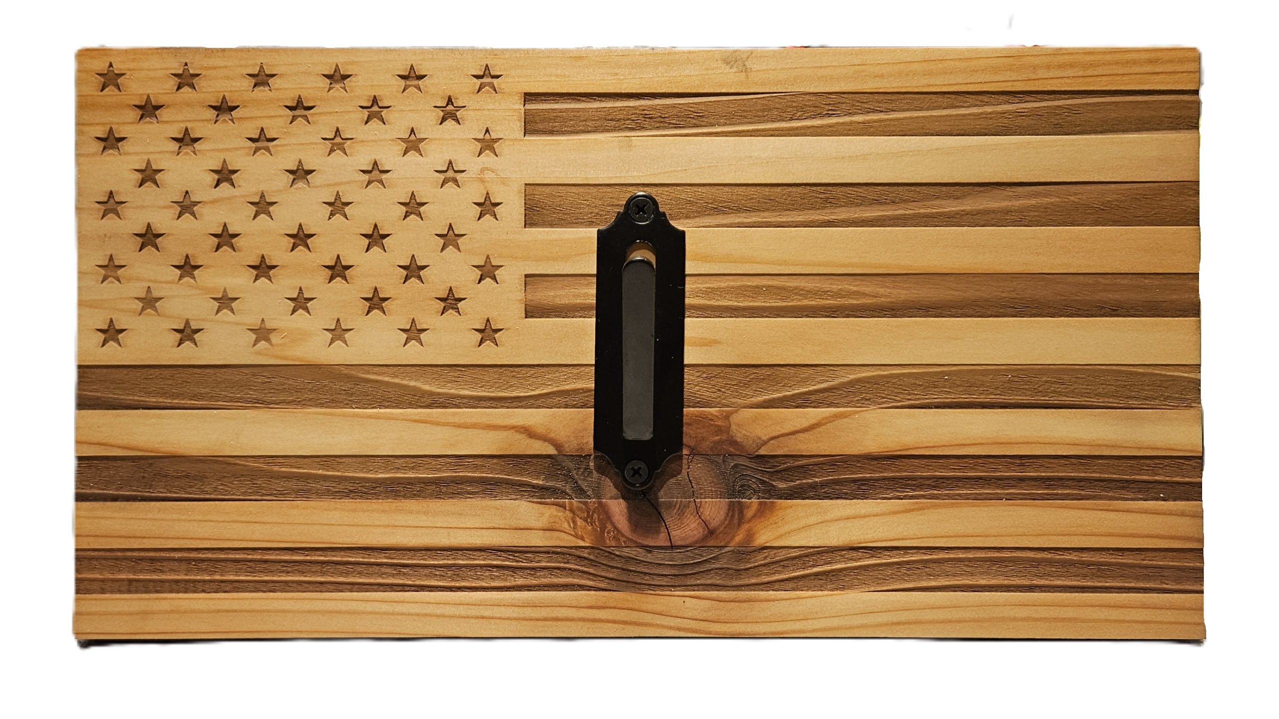 Enhance your home decor with a Wood Flag Euro Mount. This mount is a perfect blend of elegance and rustic charm. Add a touch of natural beauty to your living space. Made out of 16"x11.5"x3/4" Cedar Board – Size of Mount will vary